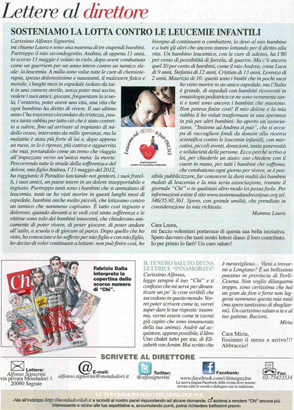 IMPORTANTE: dopo aver votato Insieme ad Andrea si può Onlus, confermate il voto tramite la mail che vi arriverà